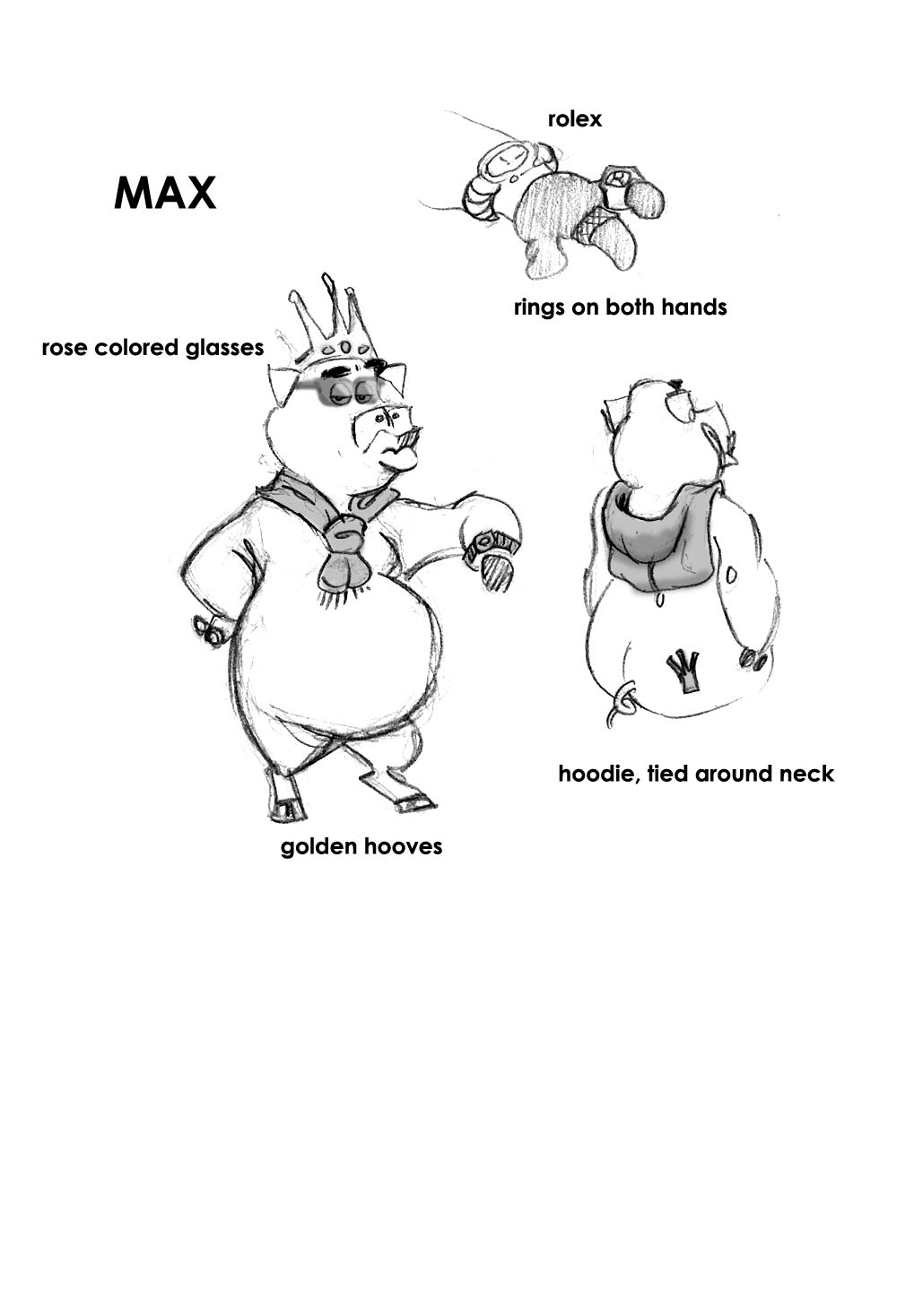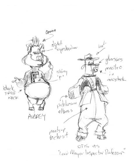 Designs for several "rich" pig characters